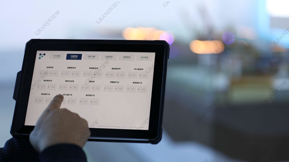 多個展廳的設計和建造讓廣角在智融物聯領域積累了豐富的經驗,在廣航局展廳的設計中,首次嘗試將電腦主機開機鍵、三個大屏幕的操控、展廳每一盞燈光的開關進行融合,將所有的功能都集中到平板之上。