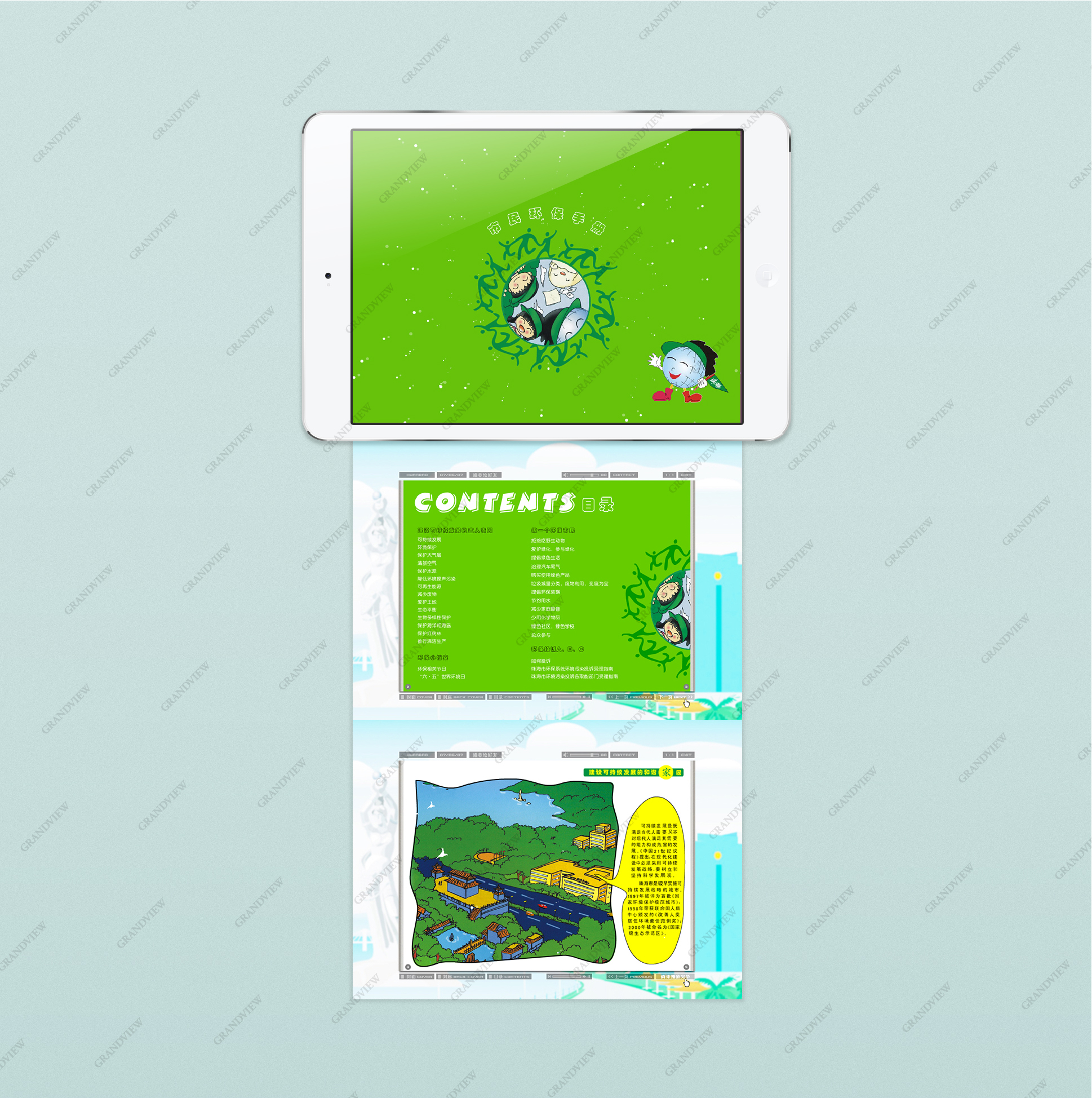 生機勃勃的綠色將宜居城市的環保主題直觀呈現,珠海市環保局電子讀物《市民環保手冊》讓人眼前一亮、心生向往。